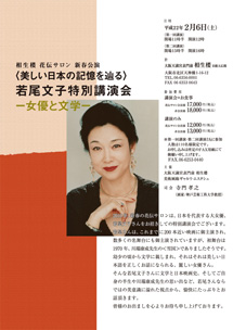 | 花伝サロン〈メンバーズ・オ ンリー〉 美術画廊ギャルリ・ムスタシュでは、天満宮表門前の大阪市最古の料亭・相生楼さんと、これまで双方を御愛顧くださっている顧客の皆様とともに、さまざまな文化を享受するべく、〈花伝サロン〉という小さな文化サロンを設立致しました。顧客の皆様には、催し毎に、相生楼、もしくはギャルリ・ムスタシュより案内と参加申込書を郵送させて頂いておりますので、ご興味のある催しがございましたら、是非、御参加くださいませ。 メンバー様の御紹介のお方さまやメンバー以外のお客様には、お席に余裕がございました時のみお申し込みを受けつけさせて頂いております。催しで御用意できるお席は毎回110名さま分でございますので、目下、花伝サロンの新規会員募集等は一切行っておりません。御了承くださいませ。 | ||
